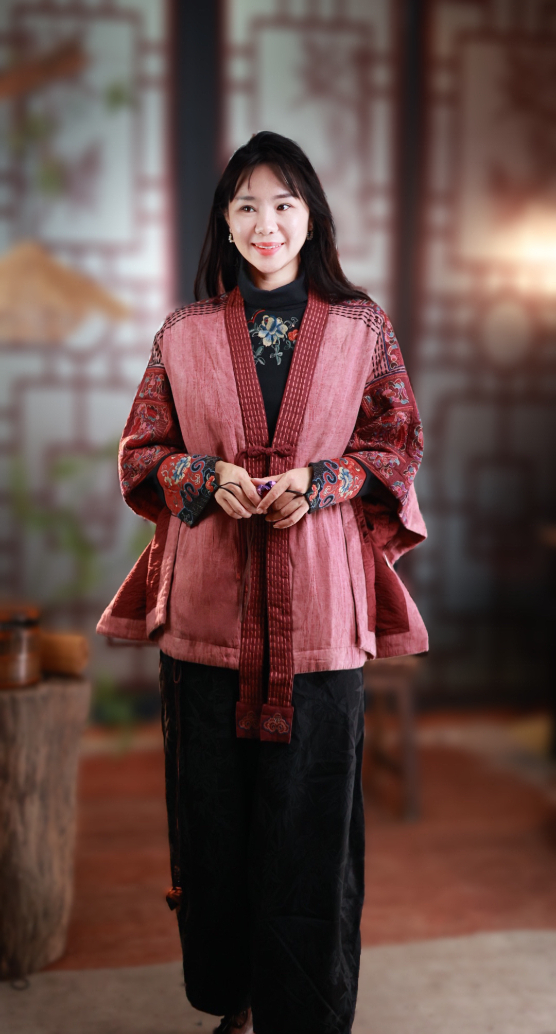 千椿物喜原创重工刺绣对襟夹棉斗篷外套披风民族风短开衫棉袄棉服