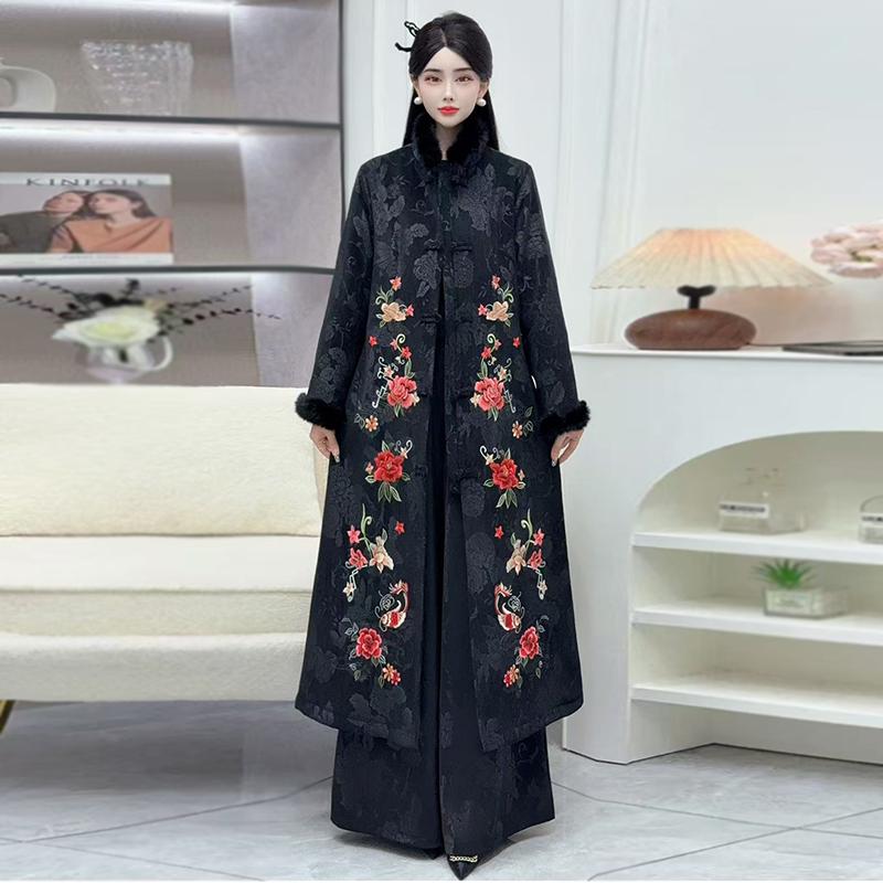 复古外套民族风刺绣长款棉衣冬装新款盘扣过膝中国风宽松唐装棉服