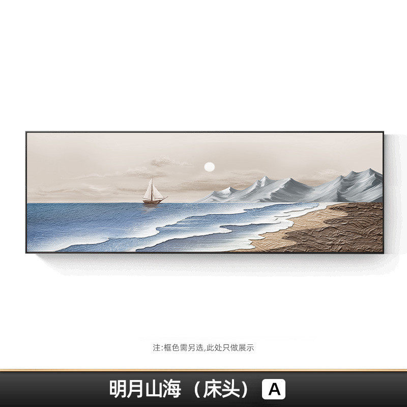 侘寂风海边风景卧室装饰床头画卧室装饰画横版壁画客厅沙发背景画