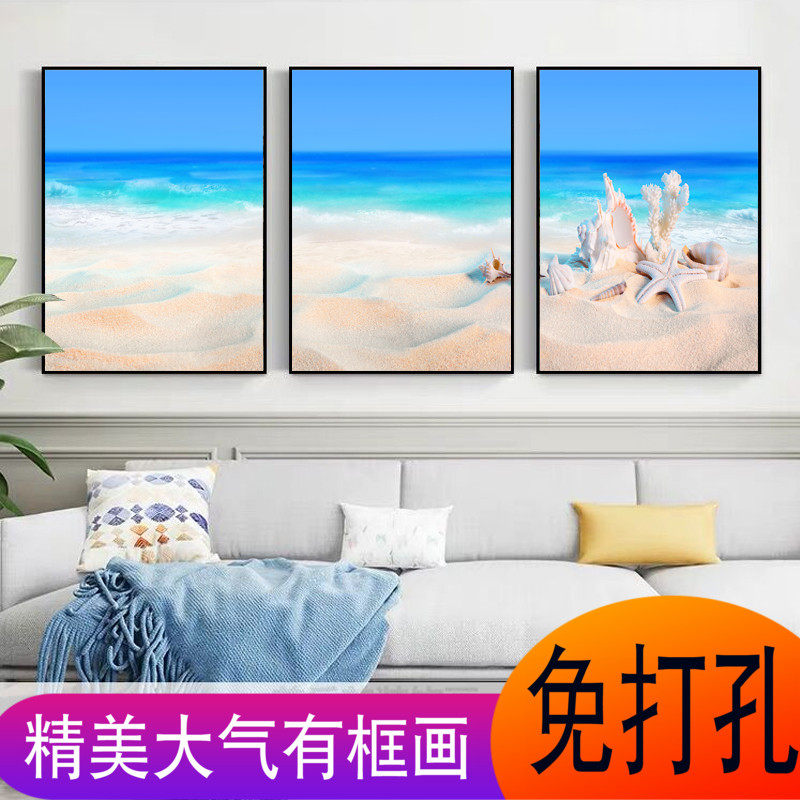 客厅三联画大海风景画沙发背景画现代简约装饰画北欧挂画卧室墙画