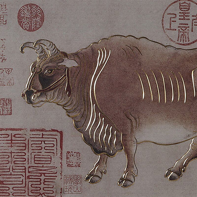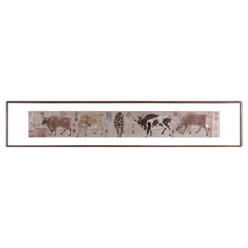 铜雕画《五牛图》客厅玄关装饰画 沙发背景画新中式名画书房挂画