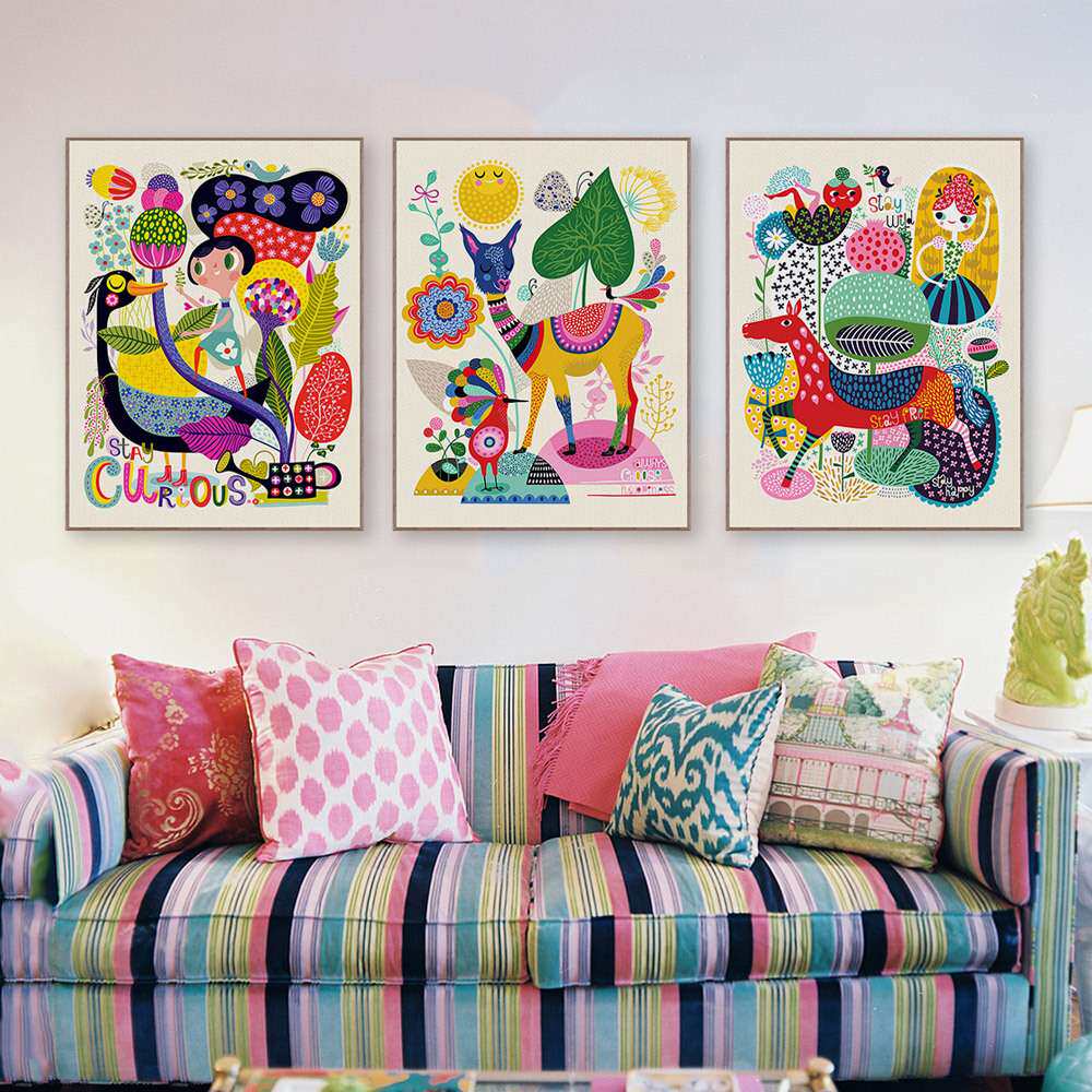 2988客厅装饰画现代简约沙发背景画儿童卧室床头横幅卡通动物挂画
