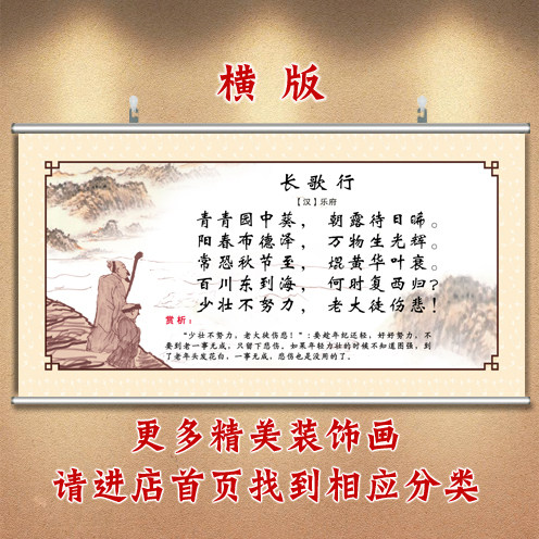 长歌行字画古诗装饰画饭厅墙画饭店挂画教室壁画课室画沙发背景画