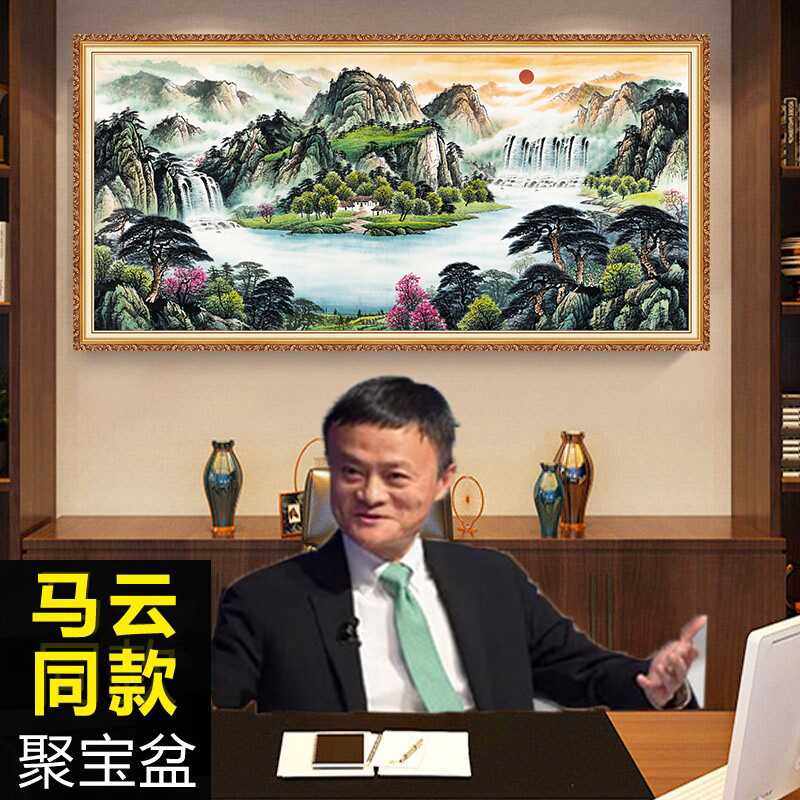 聚宝盆山水画客厅挂画沙发背景画墙装饰画西墙靠山图手绘油画壁画