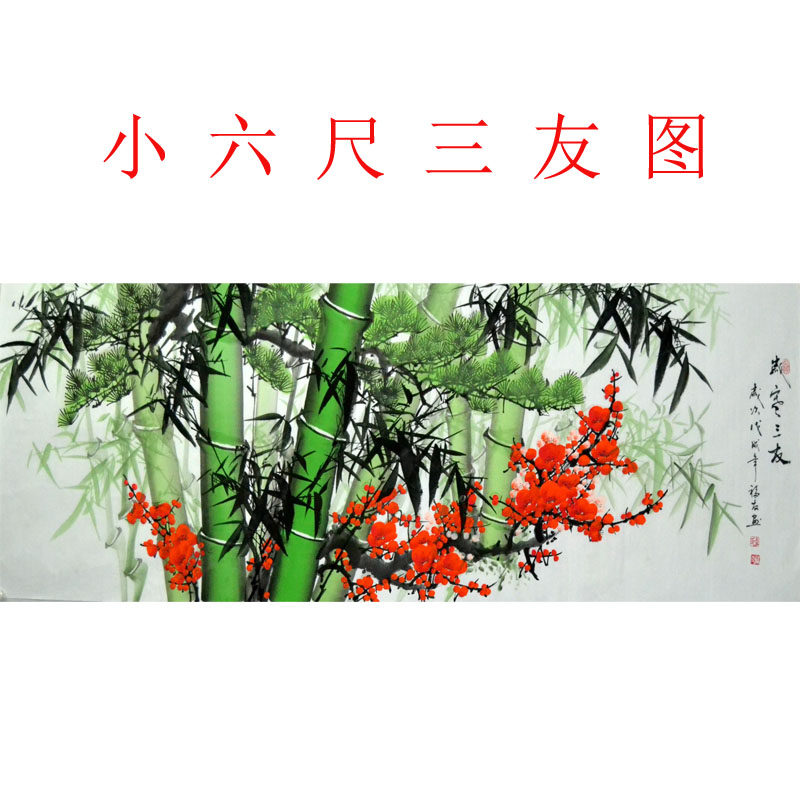 小六尺竹子纯手绘国画花鸟字画装饰中式挂画三友图沙发背景画墙画