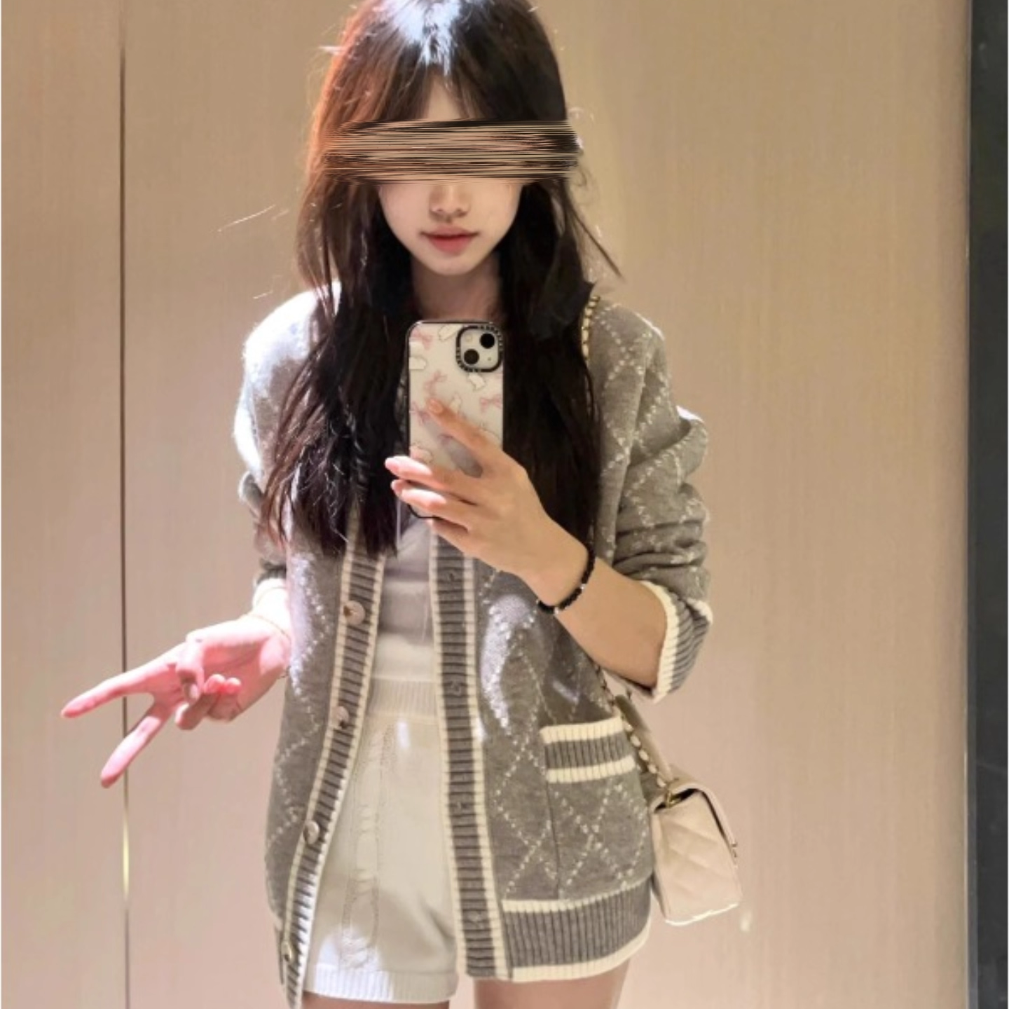 设计感菱格毛衣外套女春秋韩系灰色慵懒高级感中长款开春针织开衫