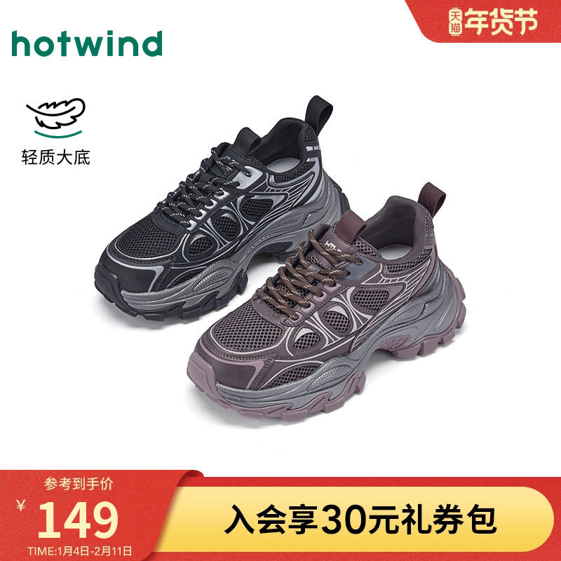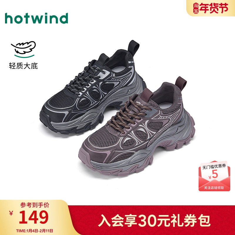 热风复古老爹鞋女2025年冬季新款黑色运动休闲鞋增高厚底女鞋子