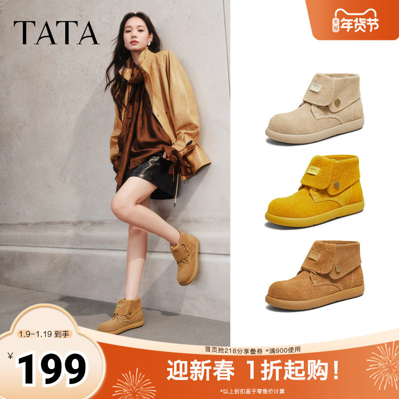 TATA他她高帮勃肯鞋2025秋冬新款棉鞋厚底女鞋雪地短靴子KXL01DD5