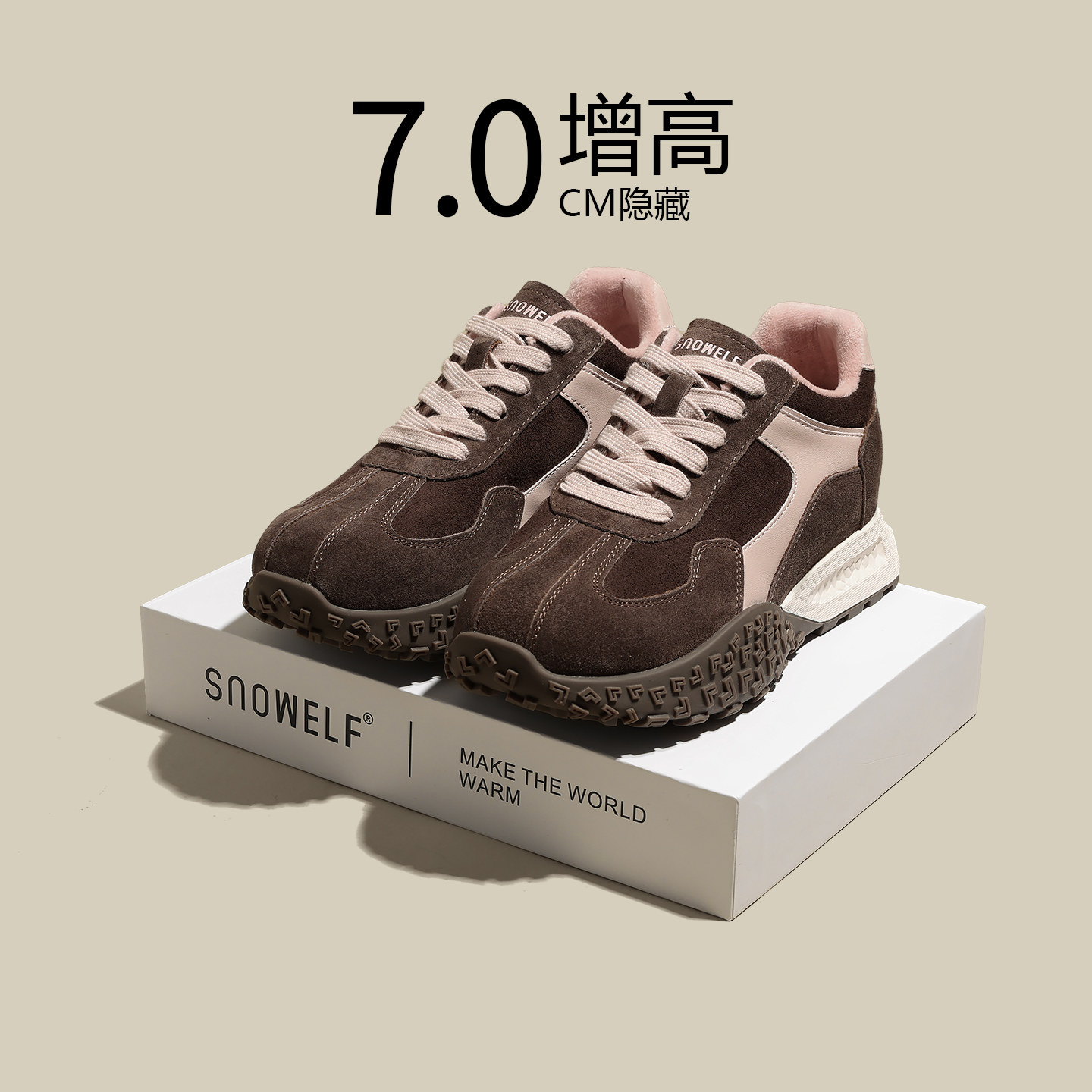 棕色德训鞋女2026新款春季内增高加绒厚底女鞋时尚百搭休闲运动鞋