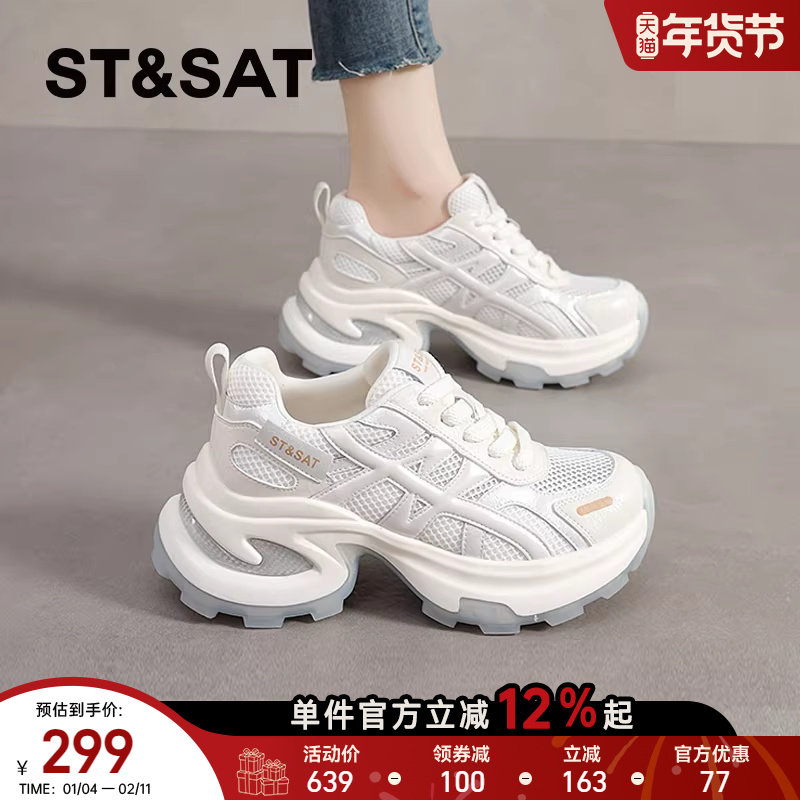星期六银色老爹鞋女增高厚底女鞋透气休闲鞋网面小白鞋女鞋复古女