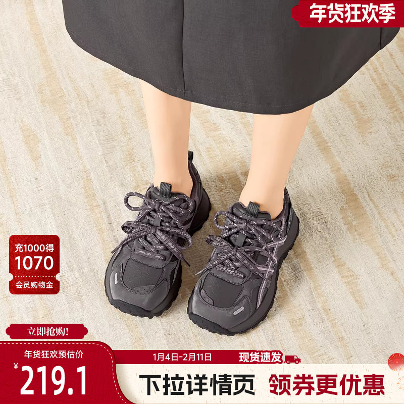 达芙妮灰色老爹鞋女轻便秋冬加绒2025新款厚底女鞋子黑色运动鞋