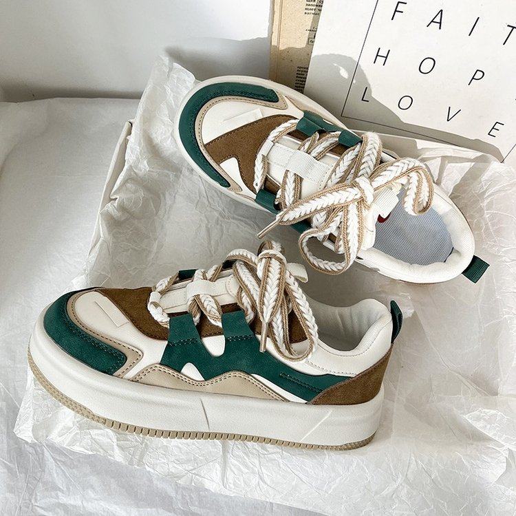 原创板鞋女春季2025新款小众设计厚底女鞋米棕百搭休闲运动鞋子女