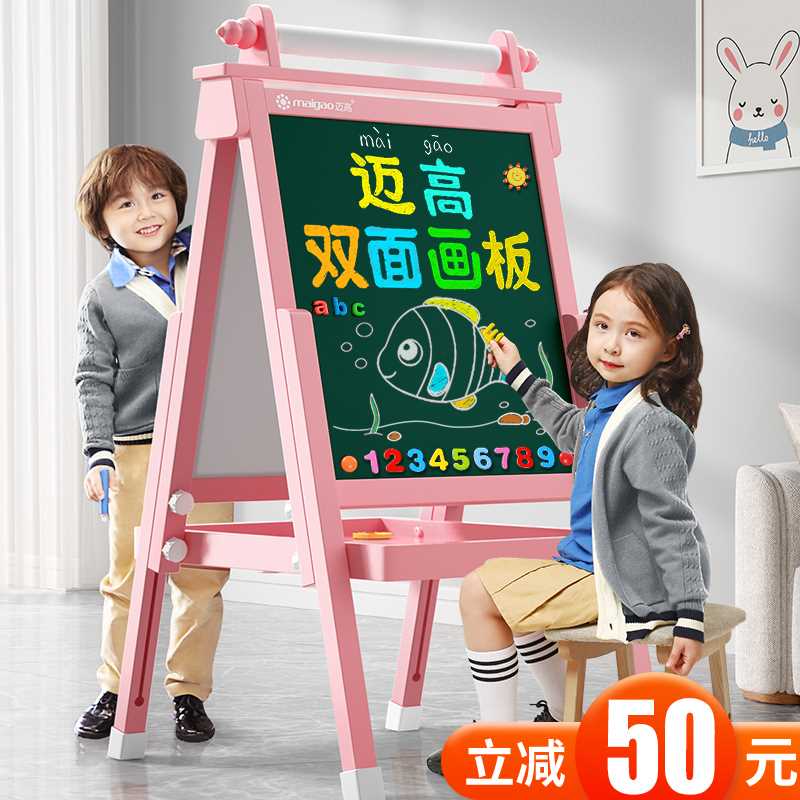 极速儿童小黑板支架式小孩家x用学习双面磁性写字涂鸦可擦无尘画