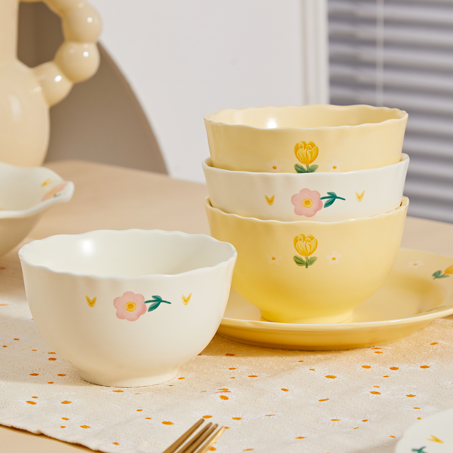 水蜜桃草莓陶瓷米饭碗家用可爱Ins风餐具情侣儿童碗勺套装盛粥碗
