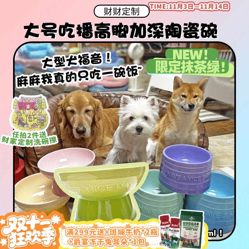 【旺财】大狗专用!财妈同款陶瓷碗加深高脚碗护颈椎金毛拉布拉多