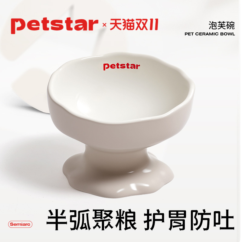 【petstar_泡芙碗】猫狗碗保护颈椎高脚陶瓷碗不易打翻宠物慢食碗