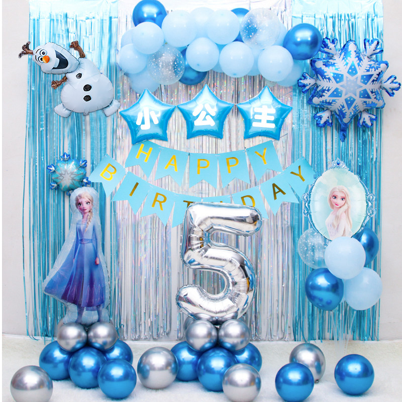 冰雪奇缘公主女孩儿童周岁生日气球套餐艾莎主题场景布置装饰背景