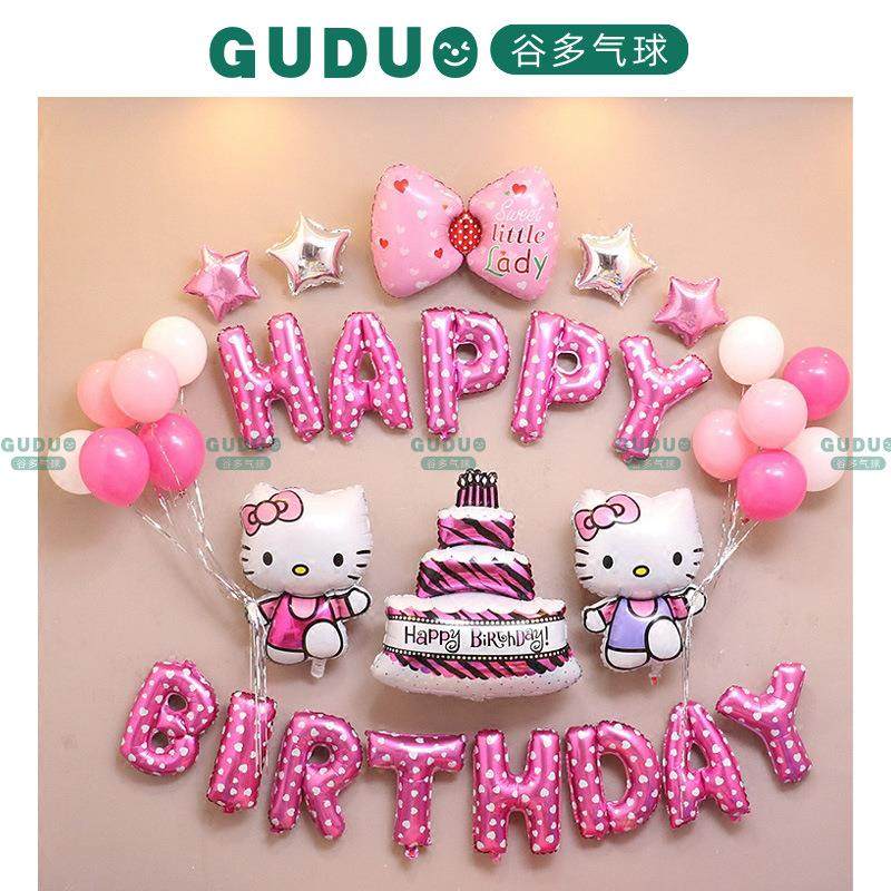 KT猫生日气球套餐 儿童派对背景墙装饰铝膜气球生日派对布置用品