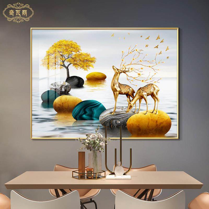 发财鹿餐厅装饰画现代简约新款客厅饭厅餐桌背景墙轻奢风高档挂画