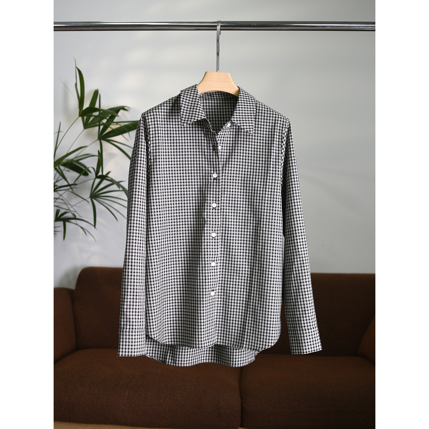 2025色织格子翻领衬衫春秋季新款时尚百搭文艺复古休闲女上衣