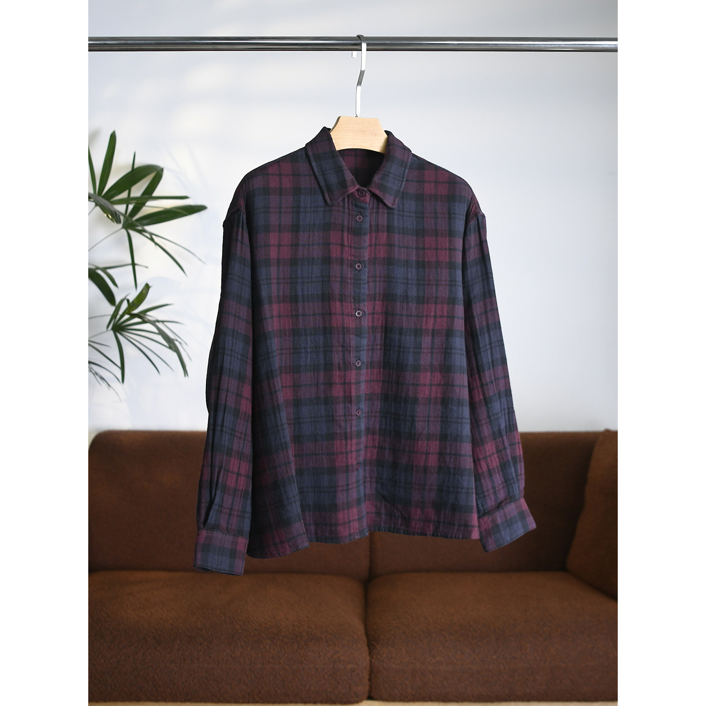 【颖颖家】}颜色美哭了!!!休闲日系风暗红色格子衬衫 女W1639