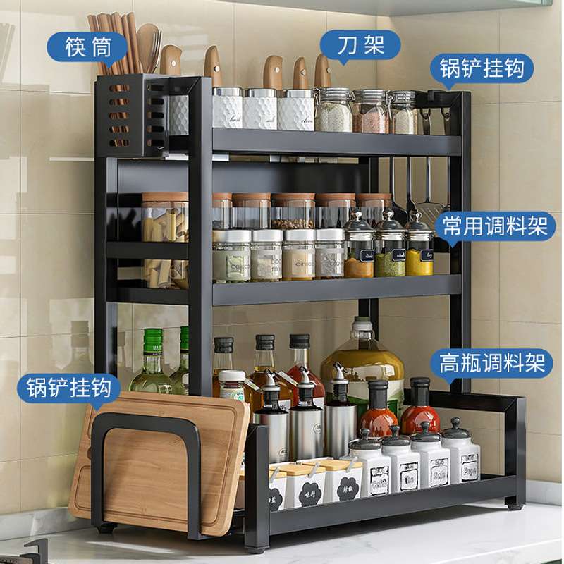 黑色不锈钢厨房调味架可拆二三层台面置物整理架可加配刀架砧板架