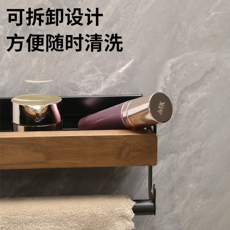 卫生间置物架免打孔胡桃木浴室洗手间厕所洗澡间壁挂式厨房调味架