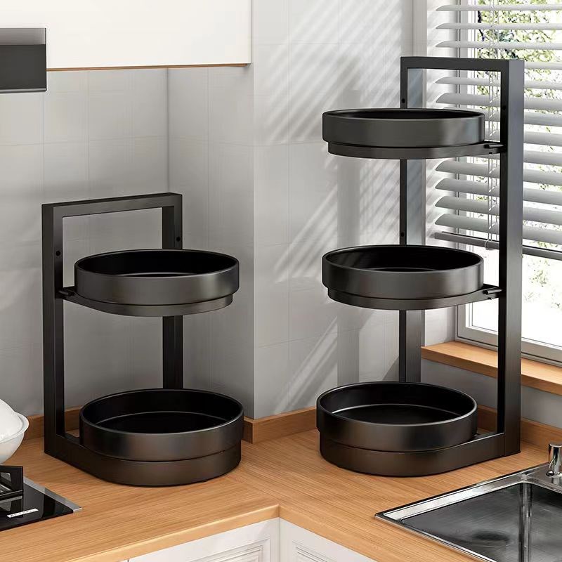 台面调料置物架家用多层可旋转卫生间多用途收纳架碳钢厨房调味架