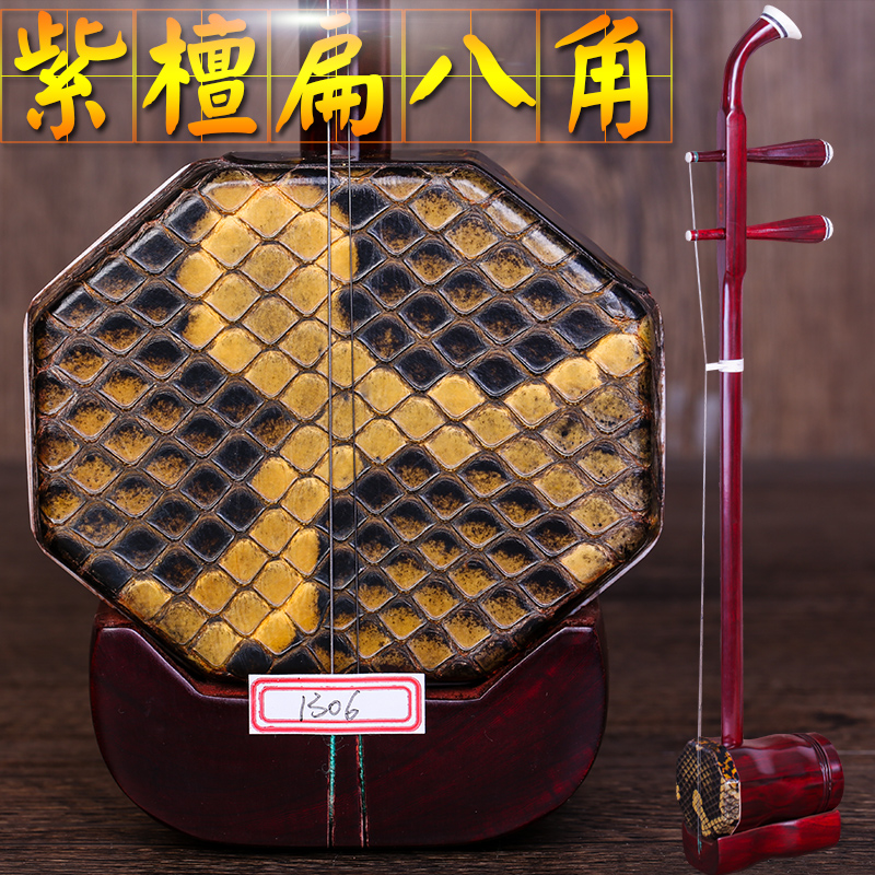 紫檀扁八b角二胡 非洲小叶紫檀/红木二胡 乐器考级用琴 扁八角二