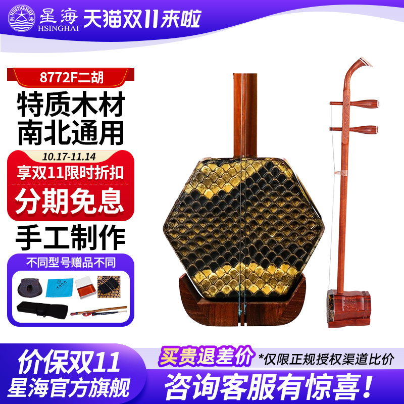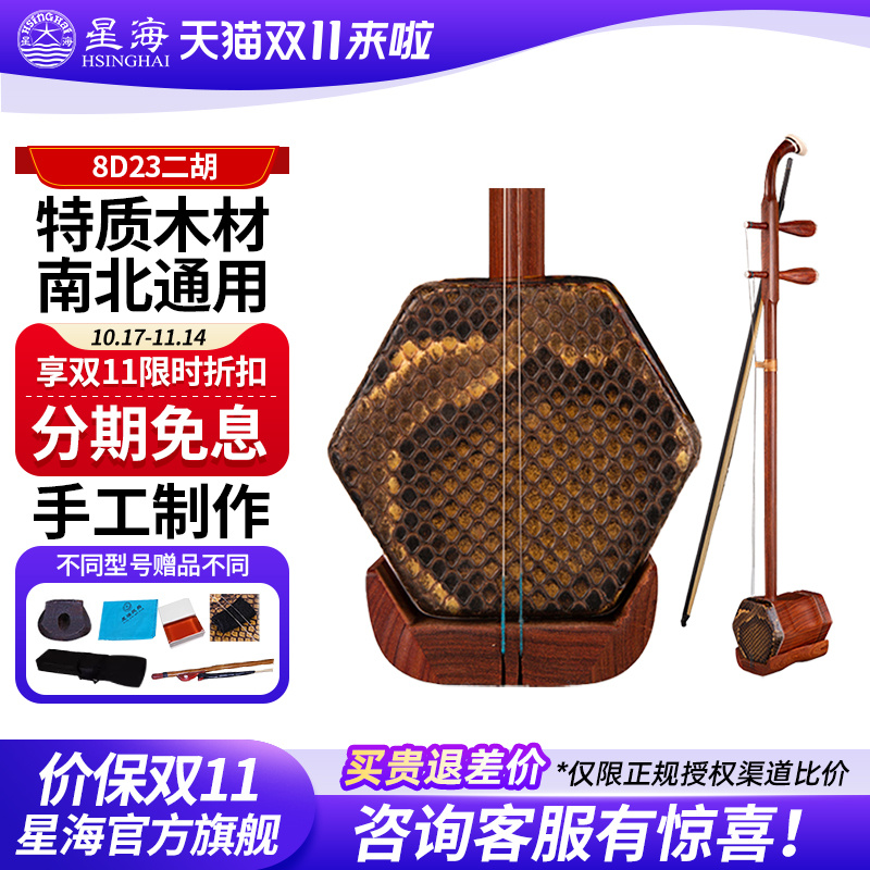 星海二胡民族乐器黑檀红木8D23儿童初学8726成人专业演奏级87215