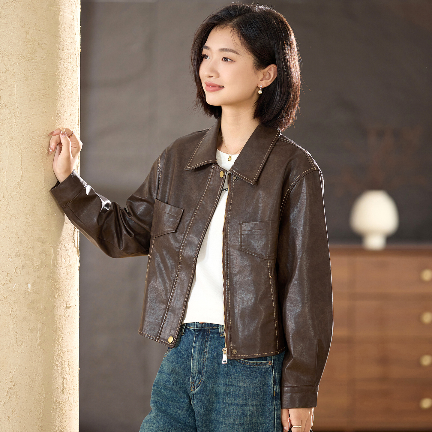 妈妈春秋冬皮衣新款40-50岁妇女PU皮夹克中老年女装外套修身上衣