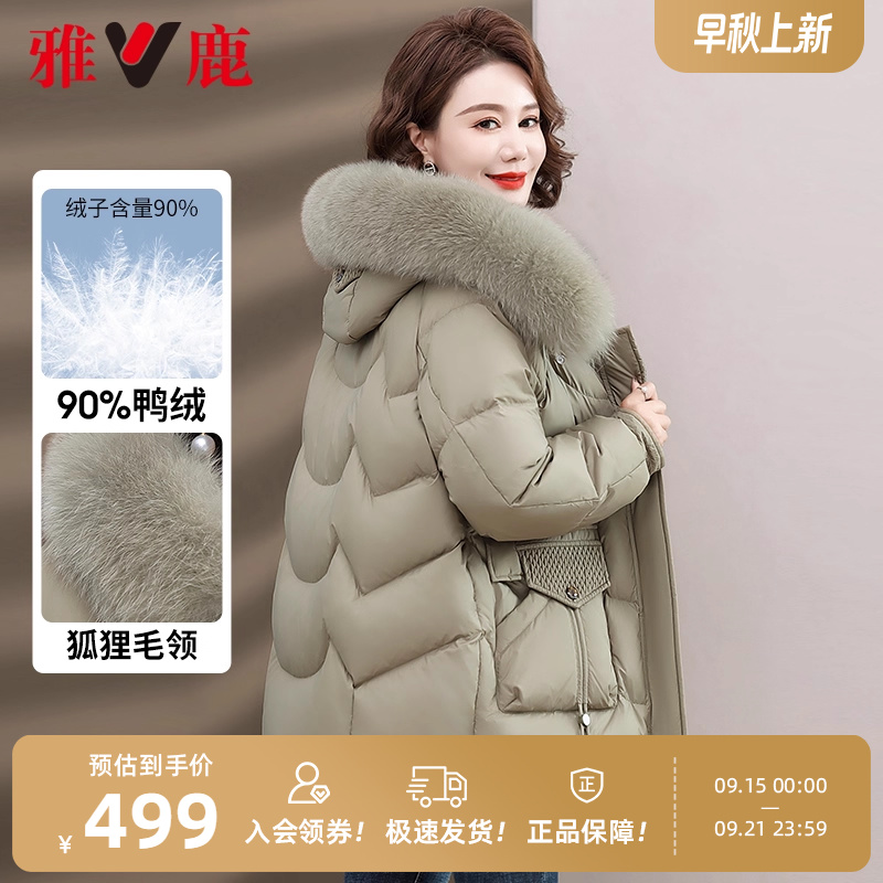 雅鹿妈妈冬季羽绒服女2025新款洋气中长款冬装保暖中老年女装外套