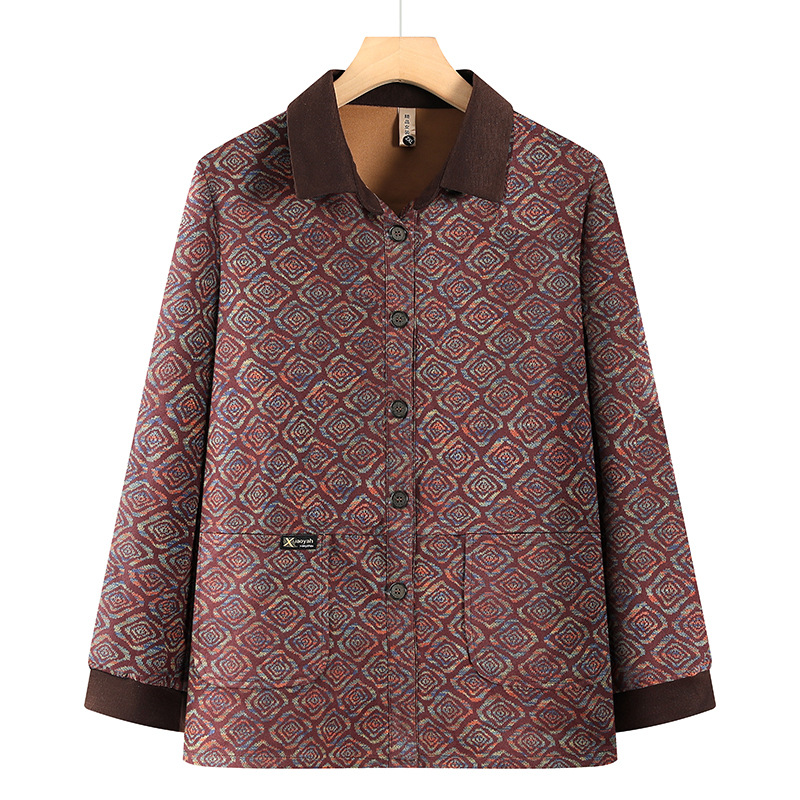 香沐兰时尚印花中老年女装外套洋气中年妈妈春秋款大码长袖上衣女