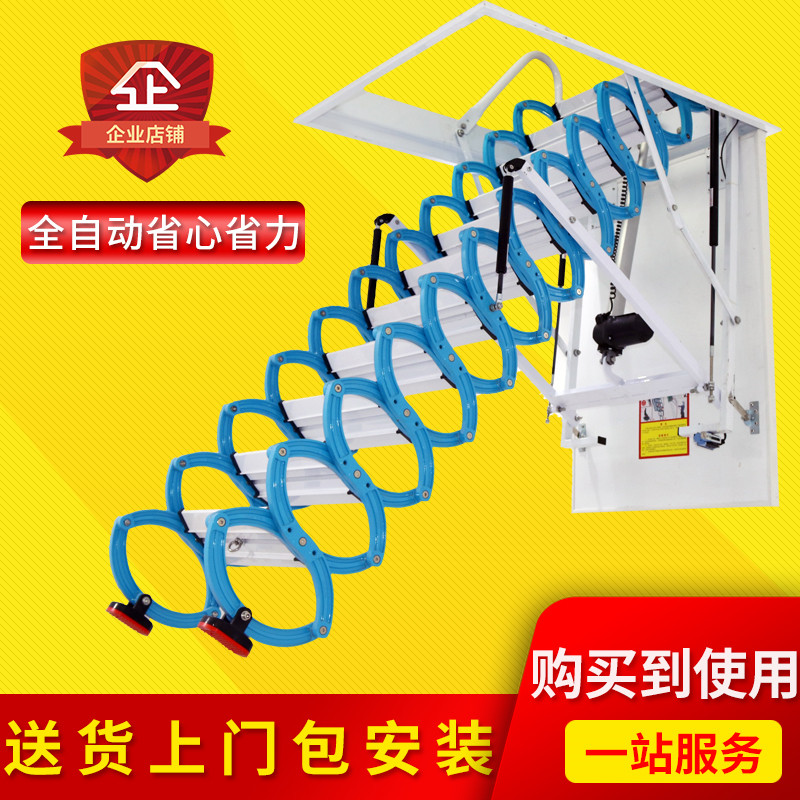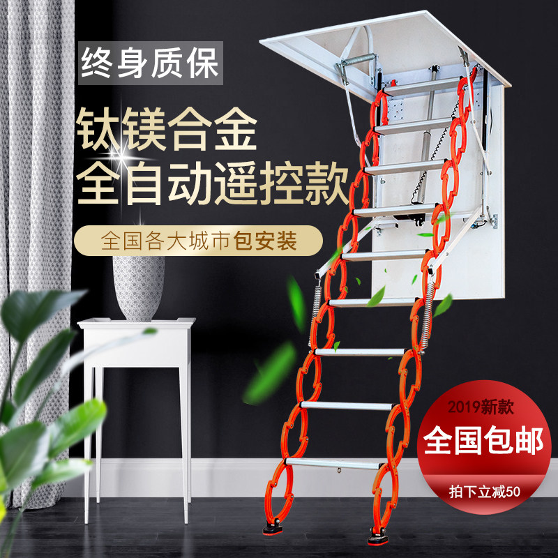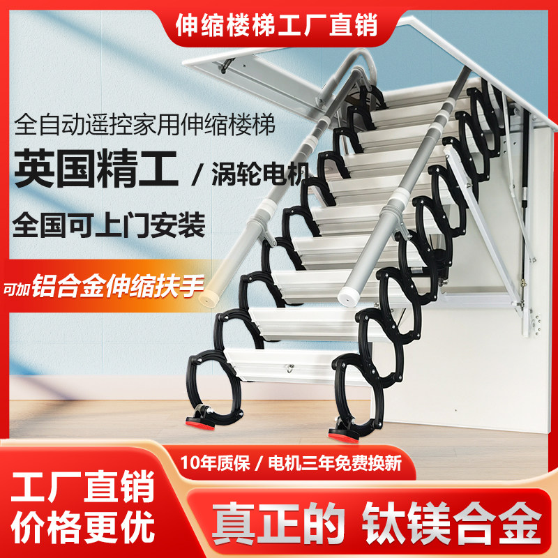 包安装电动全自动遥控阁楼伸缩楼梯家用伸拉隐藏隐形折叠升降复式