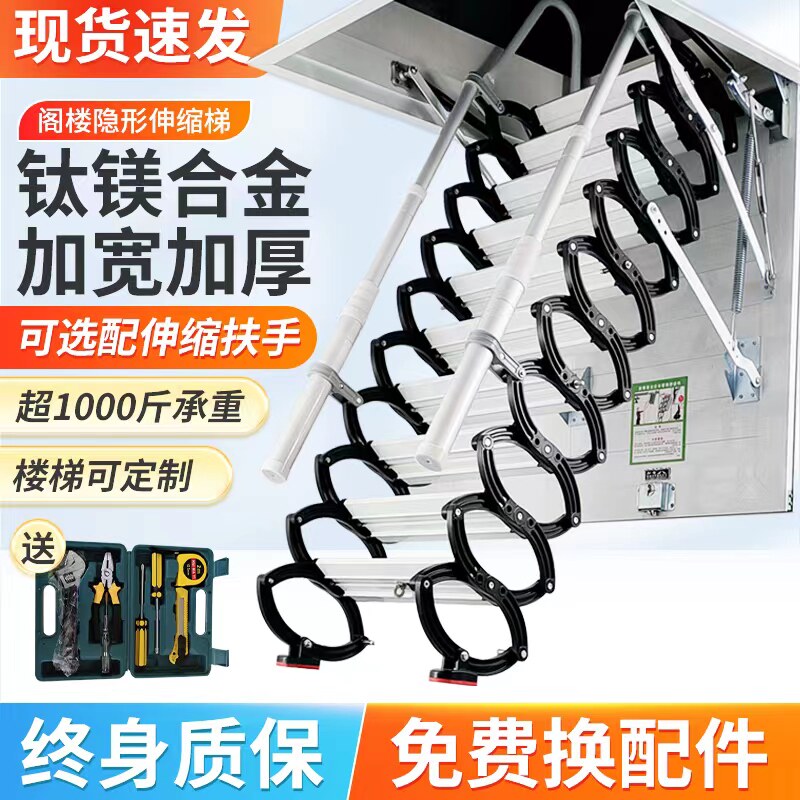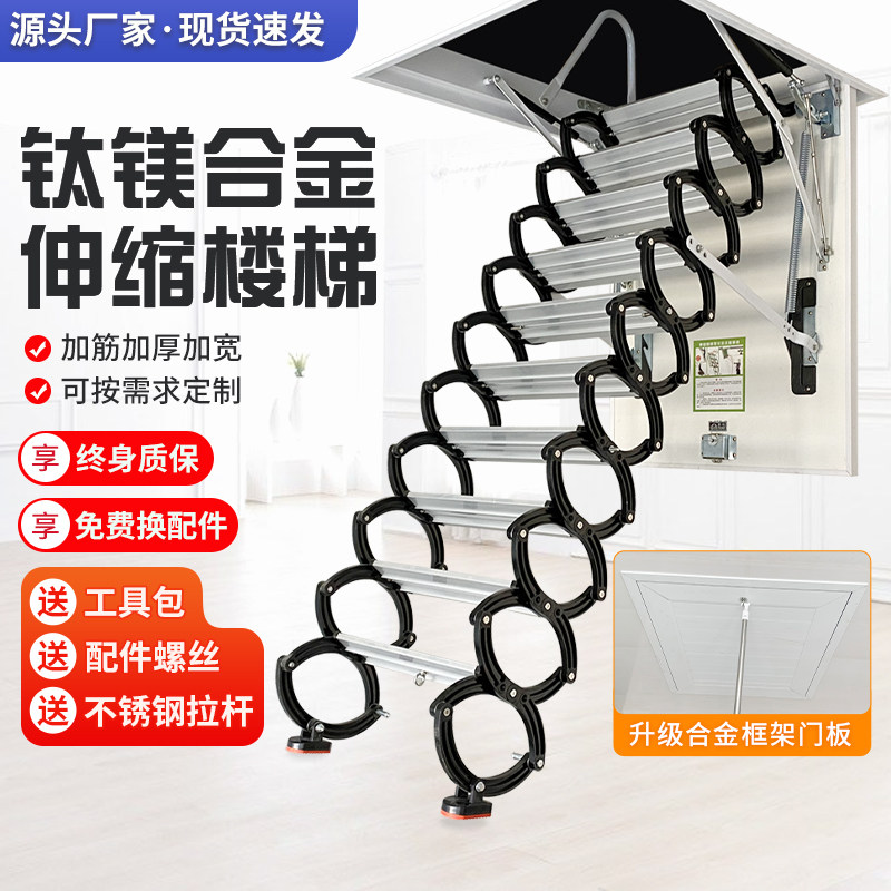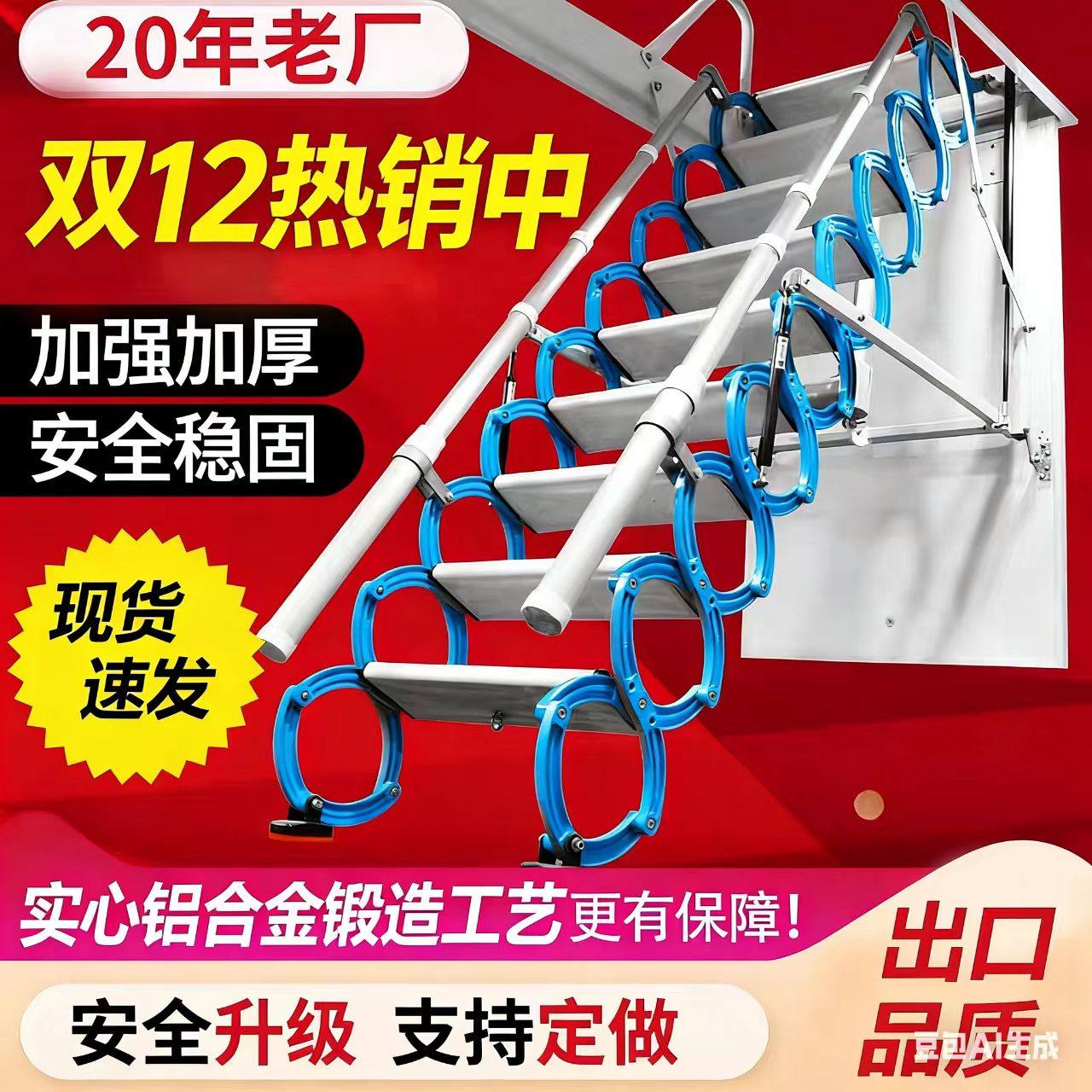 加厚钛镁合金阁楼伸缩楼梯升降楼梯伸缩梯家用别墅拉伸折叠隐形梯