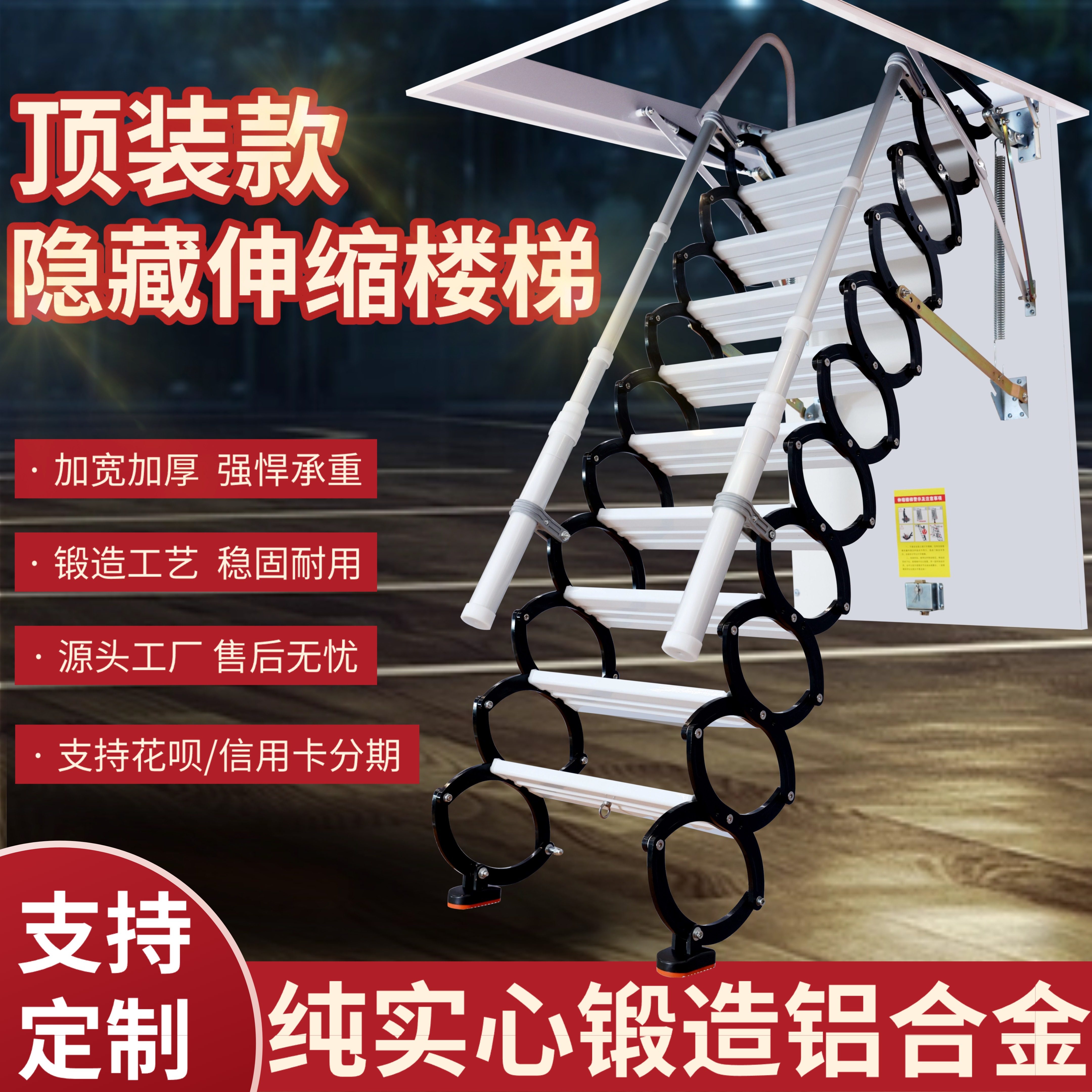 家用折叠升降加厚拉伸顶装别墅复式室内隐形楼梯阁楼伸缩楼梯定制