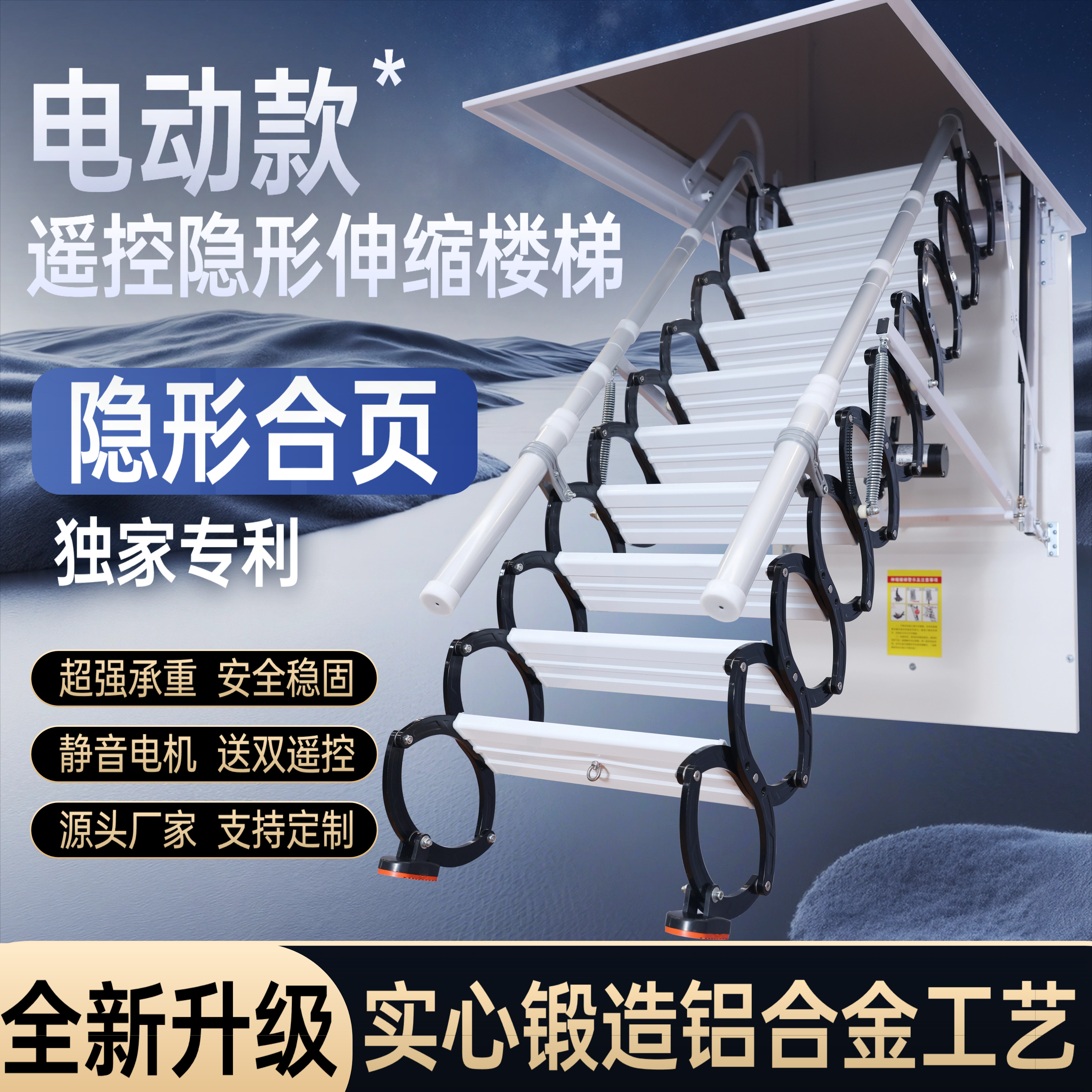 电动遥控阁楼伸缩楼梯家用折叠别墅升降梯子加厚隐形梯定制伸拉梯