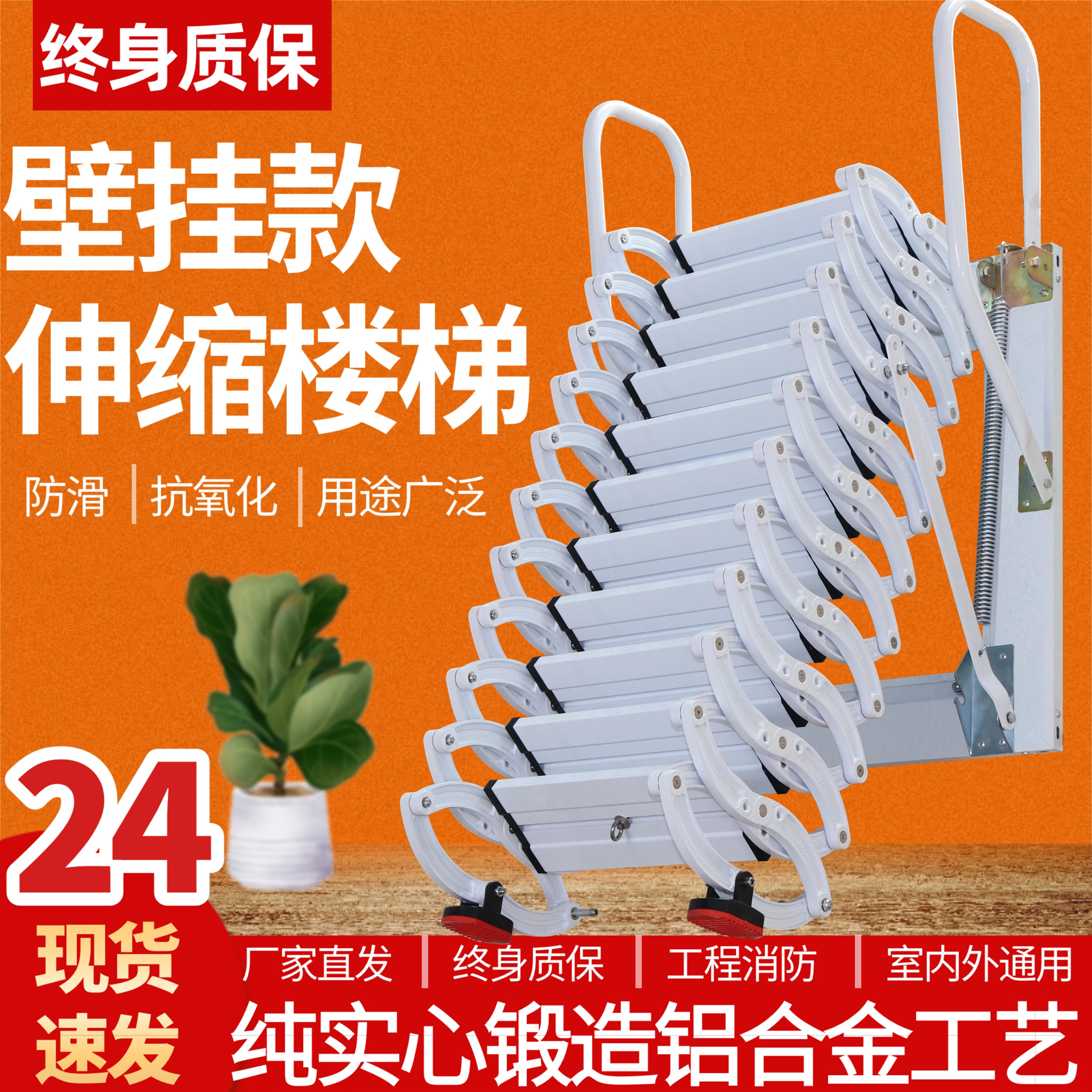 阁楼伸缩楼梯家用室内外加厚铝合金壁挂收缩升降隐形消防专用梯子