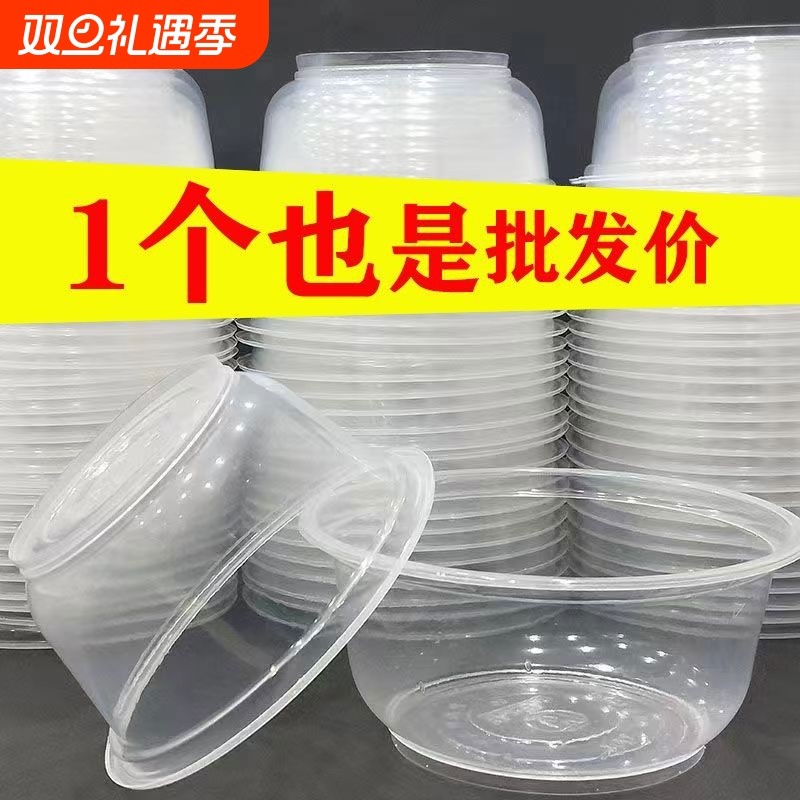 一次性碗打包汤碗打包盒圆形塑料碗带盖餐盒家用无盖食品级耐高温