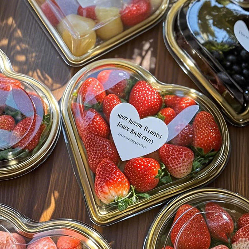 心形水果包装盒一次性草莓圣女果打包盒车厘子果切盒透明金色礼盒