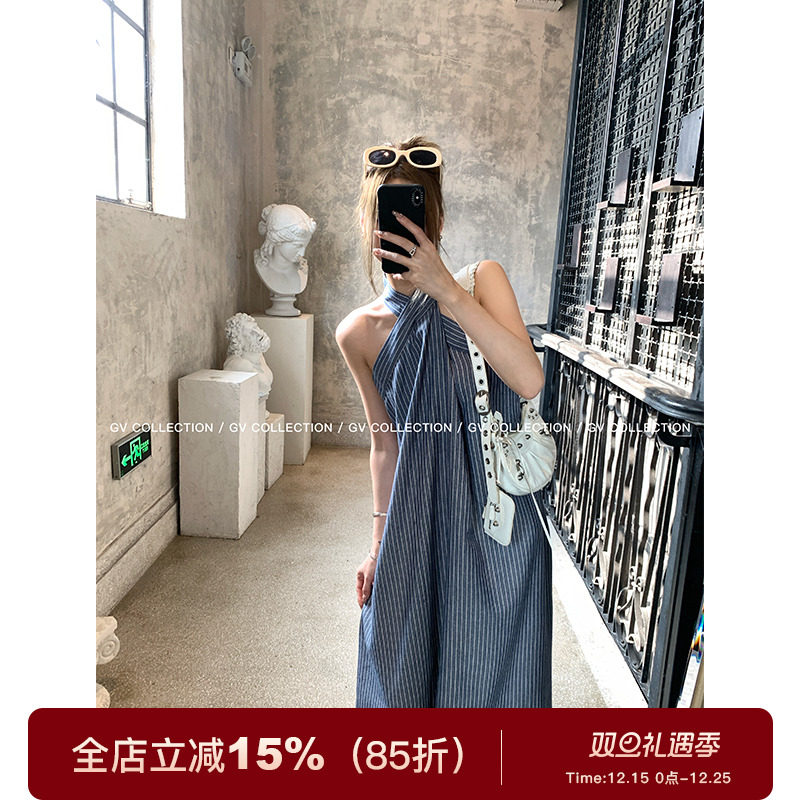 - 挂脖连衣裙a字裙