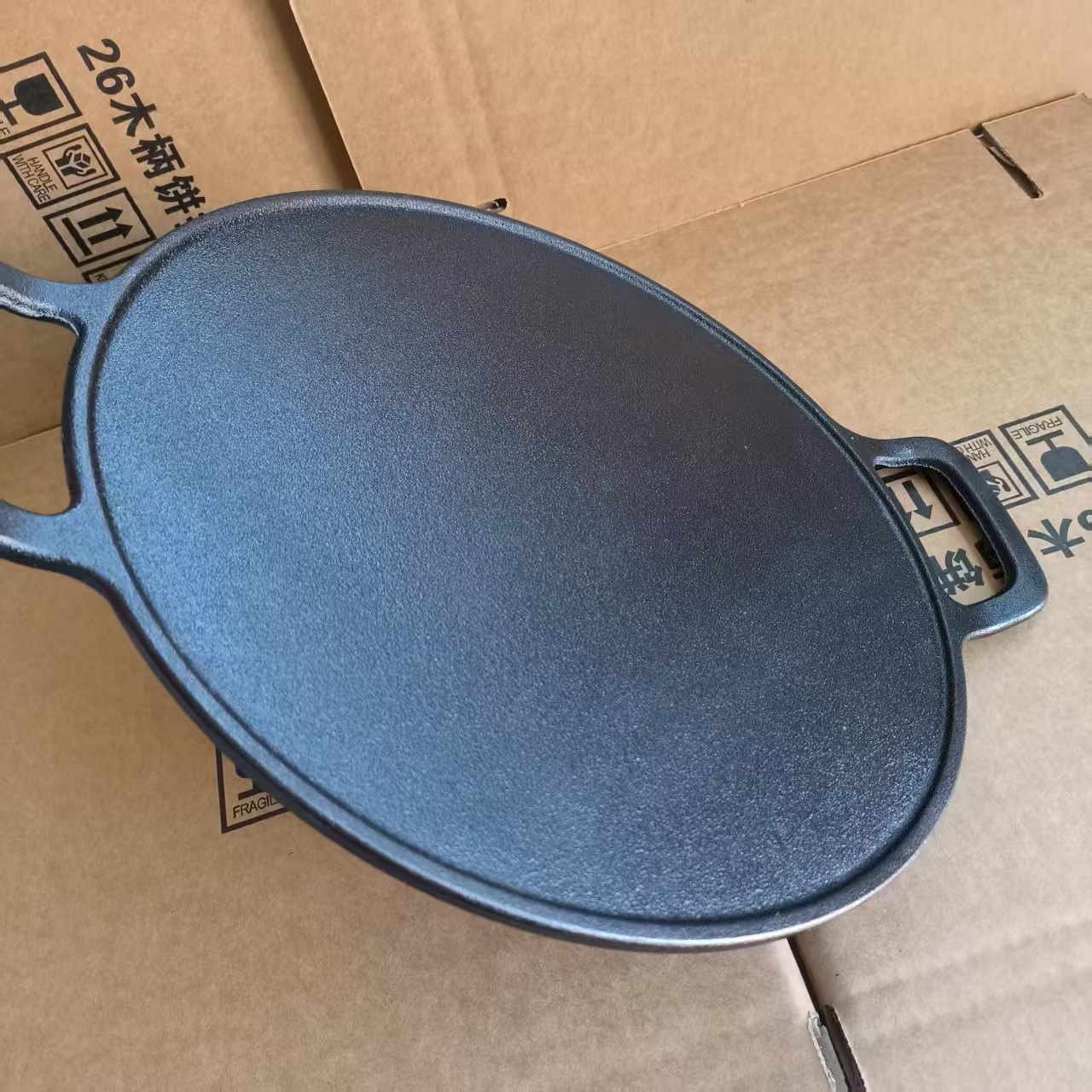 铸铁加厚双耳烙饼锅无涂层鏊子手抓饼平底锅生铁家用煎饼果子工具