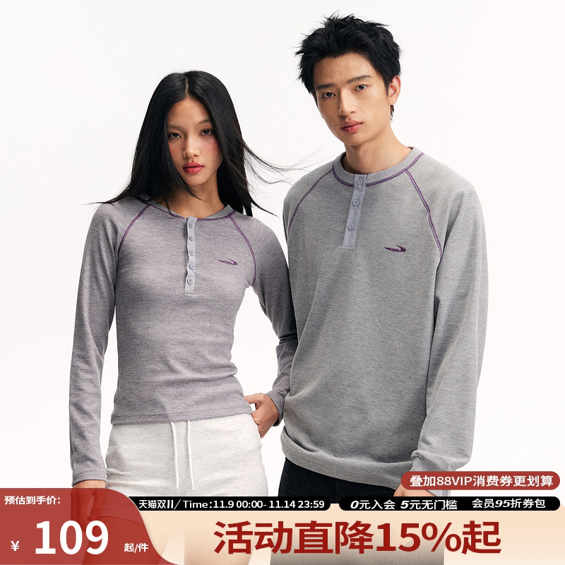 江南先生NewJNXS华夫格肌理哈苏线质感绣花亨利领罗纹长袖T恤情侣