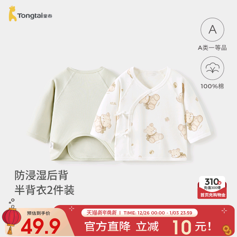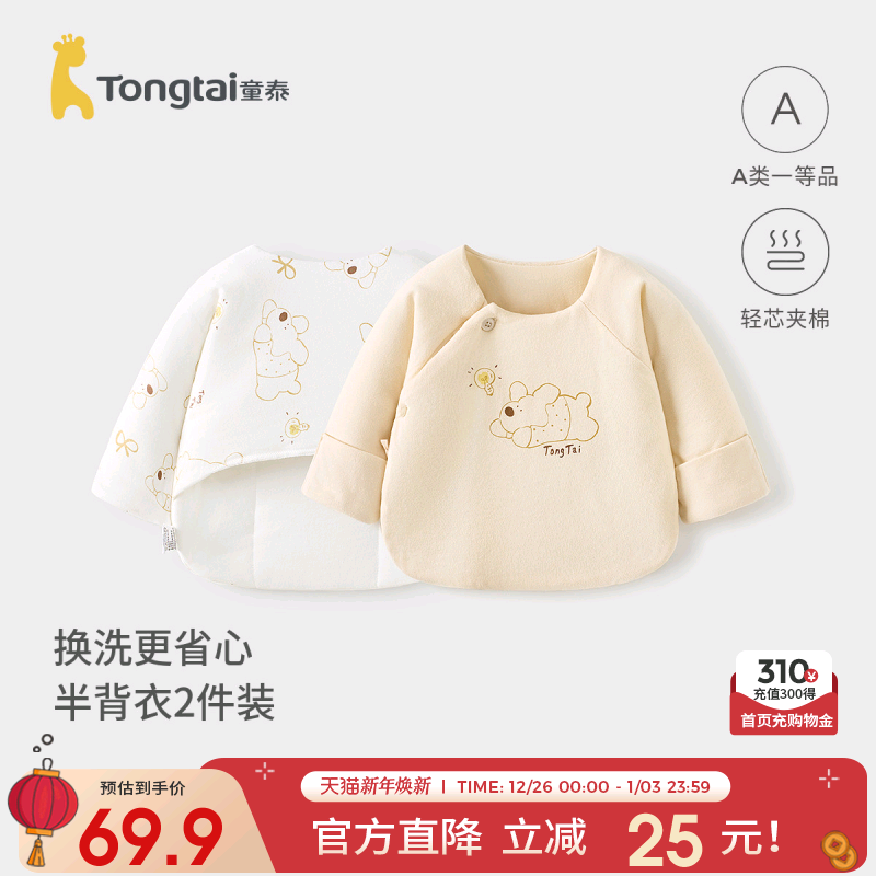 童泰新生婴儿儿衣服半背衣秋冬季初生宝宝纯棉上衣保暖和尚服2件