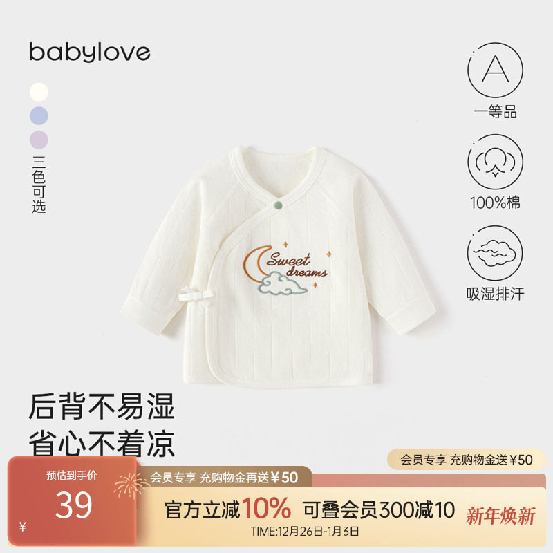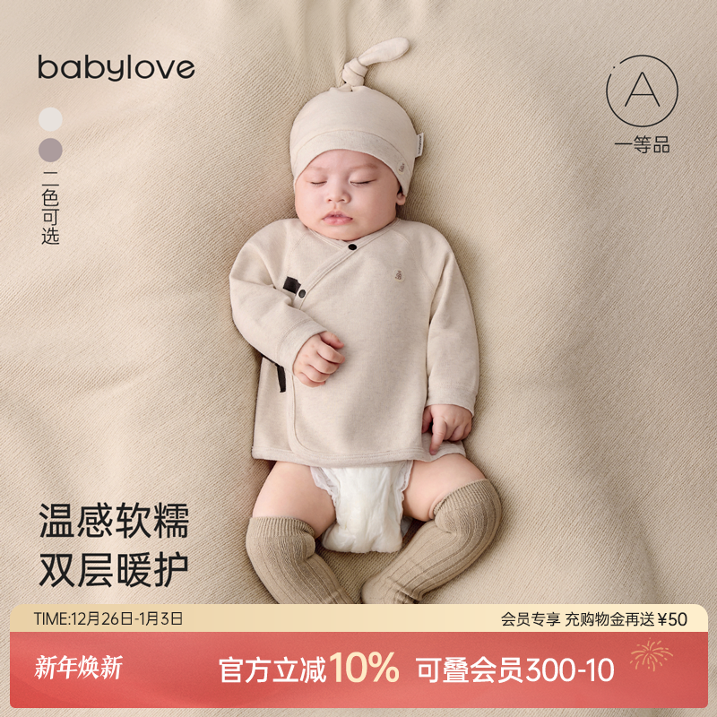 【清仓】babylove新生儿半背衣春秋纯棉衣服婴儿上衣宝宝护肚睡衣