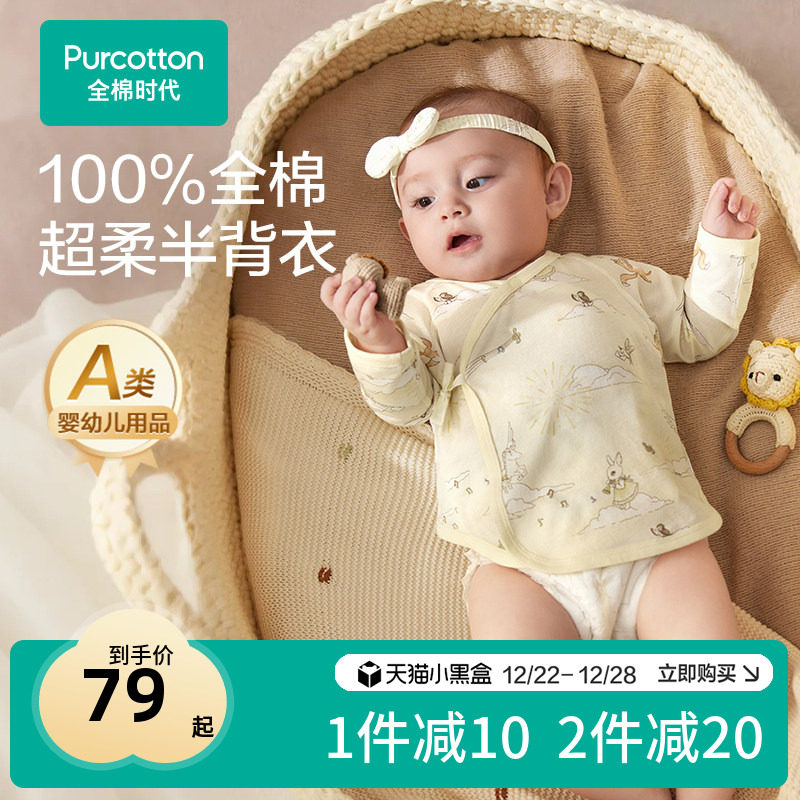 全棉时代婴儿衣服半背衣52码宝宝a类纯棉长袖上衣春秋新生和尚服