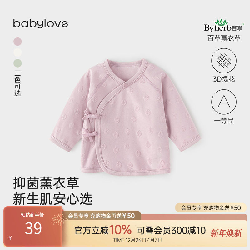 【清仓】babylove新生儿半背衣春秋上衣婴儿睡衣宝宝熏草提花衣服