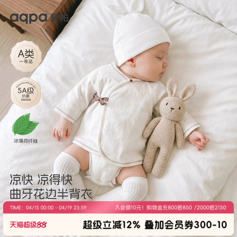 aqpa爱帕「冰薄荷甜甜圈」新生婴儿半背衣夏季薄款纱布宝宝和尚服