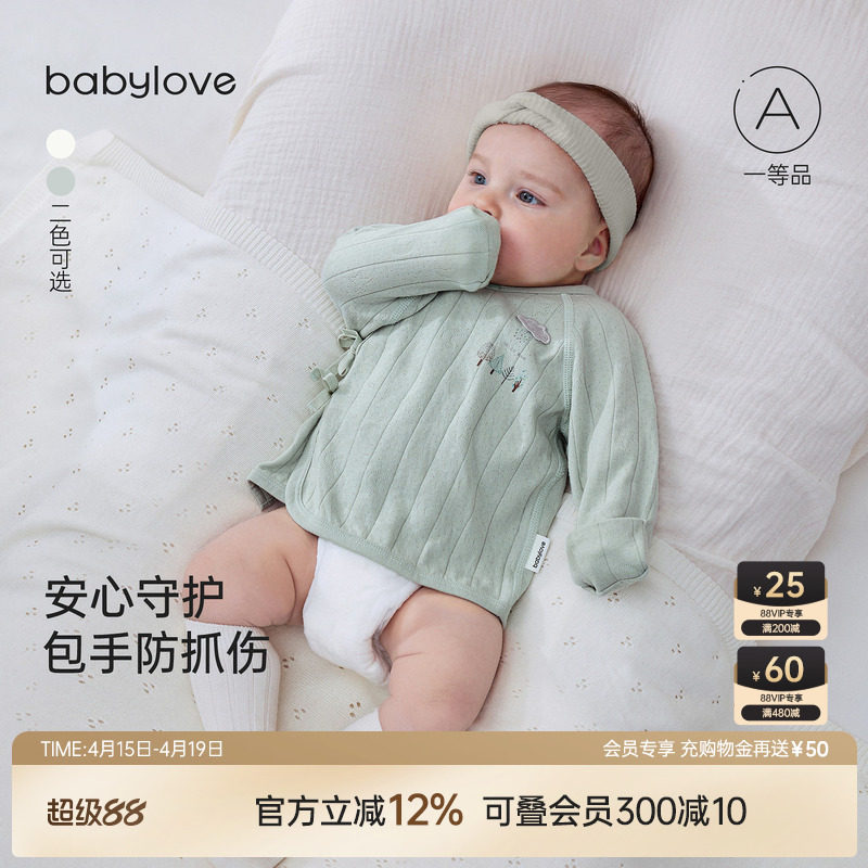 babylove新生儿半背衣春夏季纯棉提花上衣初生宝宝柔软透气和尚服