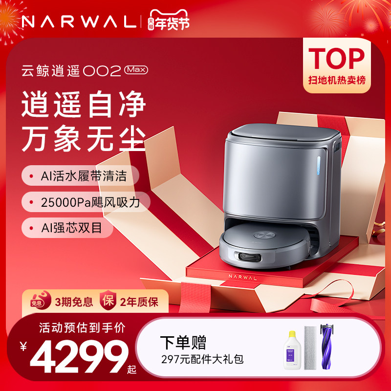 【年货节】云鲸逍遥002Max AI活水履带自动清洗扫地机器人